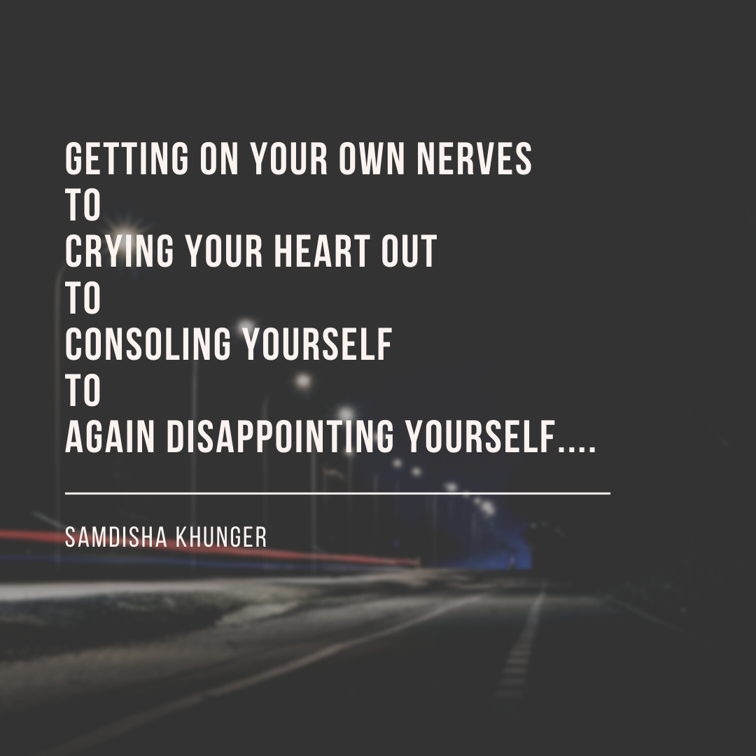 Getting on your own nerves, to crying your heart out, to consoling yourself, to again disappointing yourself!